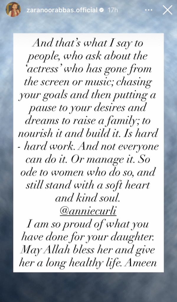 Her post touched many, prompting celebrities like Farhan Saeed, Zara Noor Abbas, and Hadiqa Kiani to share emotional responses. Saeed called the story heartbreaking and prayed for Isha’s swift recovery. Abbas praised Annie’s strength, calling her decision to prioritize motherhood over fame an act of rare courage and love.