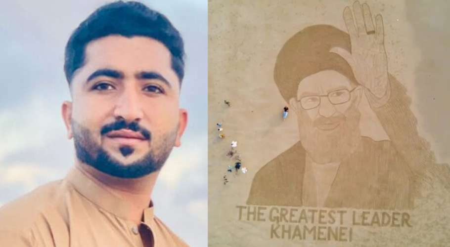 Balochistan sand artist creates viral tribute portrait of Iran’s Ali Khamenei on Gaddani Beach.