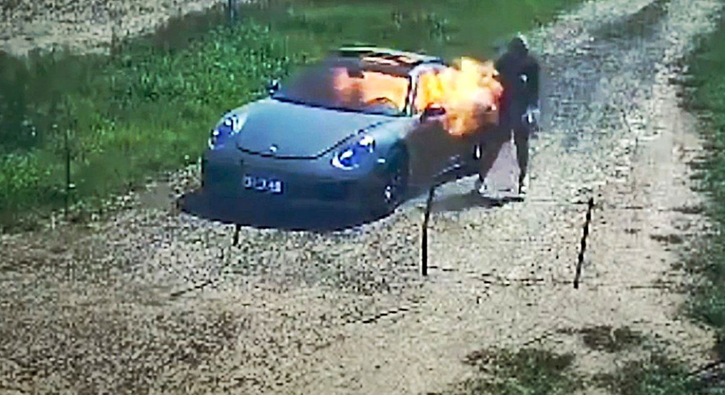 A Brazilian man’s elaborate insurance scam backfired when he set fire to his luxury Porsche 911 Carrera and was caught on a nearby camera.