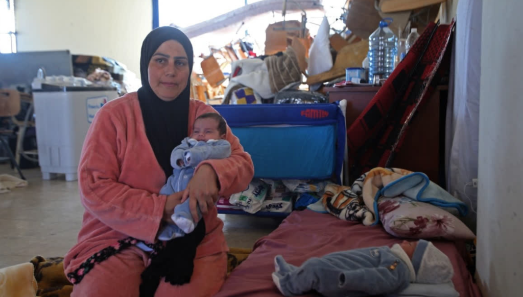 Among them is Mariam Zein, a 26-year-old mother. She cradles her 11-week-old son on a mattress in a shared shelter near Beirut. Her life changed suddenly when war forced her family to flee.