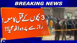 The incident came to light when police recovered the bodies of three young children from a house in Lahoreโs Ichhra area. The victims included five-year-old Mominah Batool, four-year-old Momin Raza, and 18-month-old Umm-e-Habiba. All three were found with severe throat injuries.