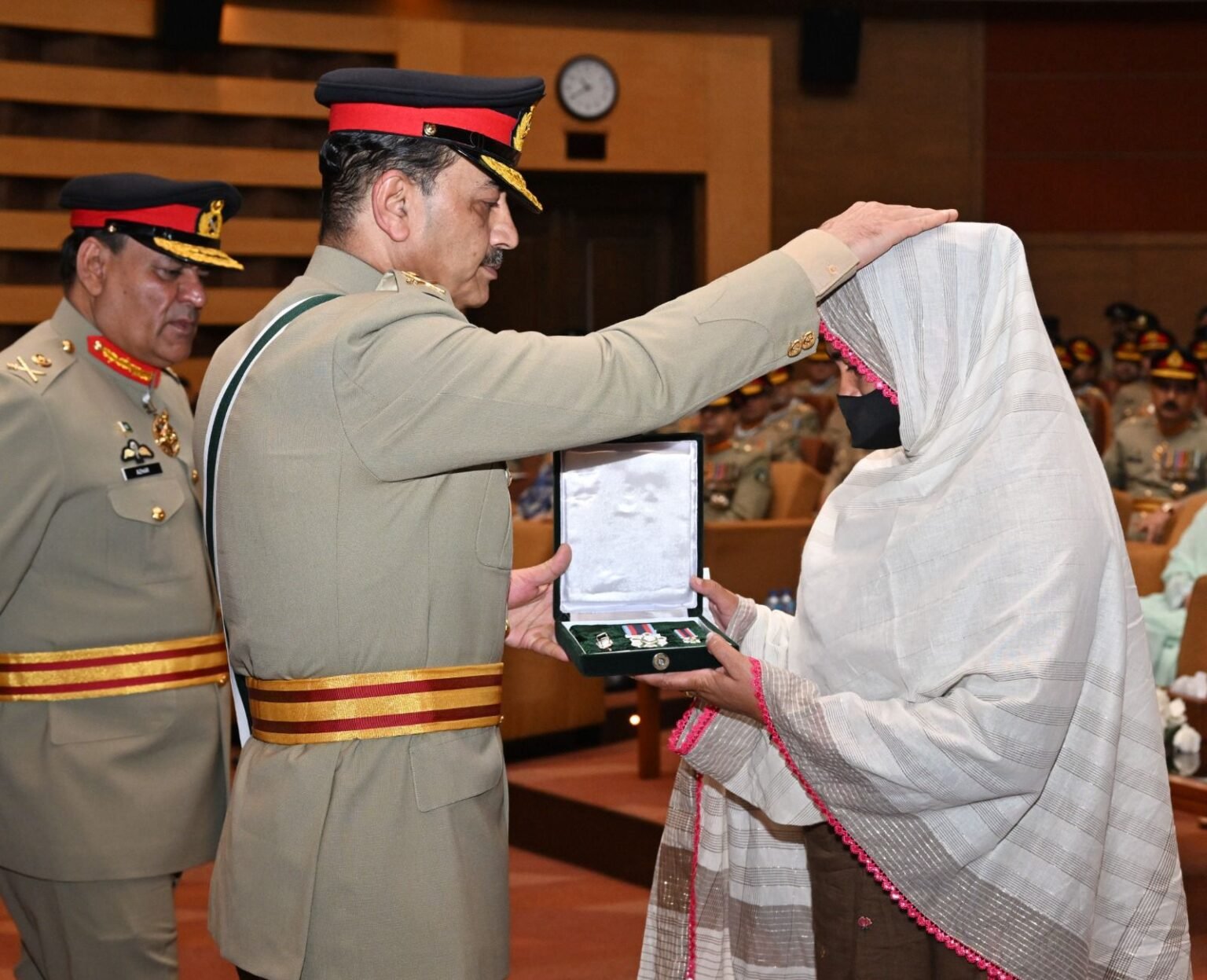 โShuhada and Ghazis are our enduring pride. Their honour is a sacred trust upon every Pakistani,โ Gen Munir said during an investiture ceremony held at General Headquarters (GHQ) in Rawalpindi.