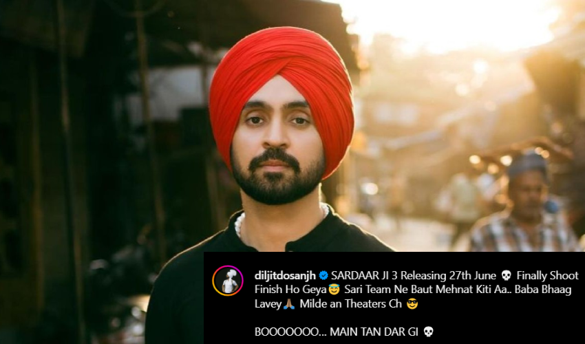In his signature playful style, Diljit captioned the post, saying, “Sardaar Ji 3 releasing 27th June. Finally, shoot finish ho geya. Sari team ne baut mehnat kiti aa. Baba bhaag lavey. Milde an theaters ch! BOOOOOOO… Main tan dar gi!” This message, in his usual fun-filled tone, revealed the hard work that had gone into making the film and gave fans a reason to look forward to its release.