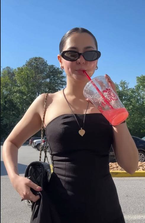 Moreover, the clip showed Hania bathed in natural light, highlighting her relaxed confidence and signature charm. She wore a strapless black maxi dress with a fitted bodice and flowing silhouette, blending comfort with understated elegance. In addition, she completed her look with oval black sunglasses and a delicate pendant necklace, reflecting a minimalist “clean girl” aesthetic.