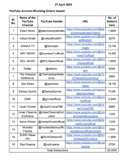 Among those affected is renowned former cricketer Shoaib Akhtar, whose personal channel, with over 3.5 million subscribers, was blocked. Other prominent channels such as Dawn News, Samaa TV, ARY News, Geo News, Bol News, and Raftar have also been targeted, with an estimated 63 million subscribers across India impacted by the ban.