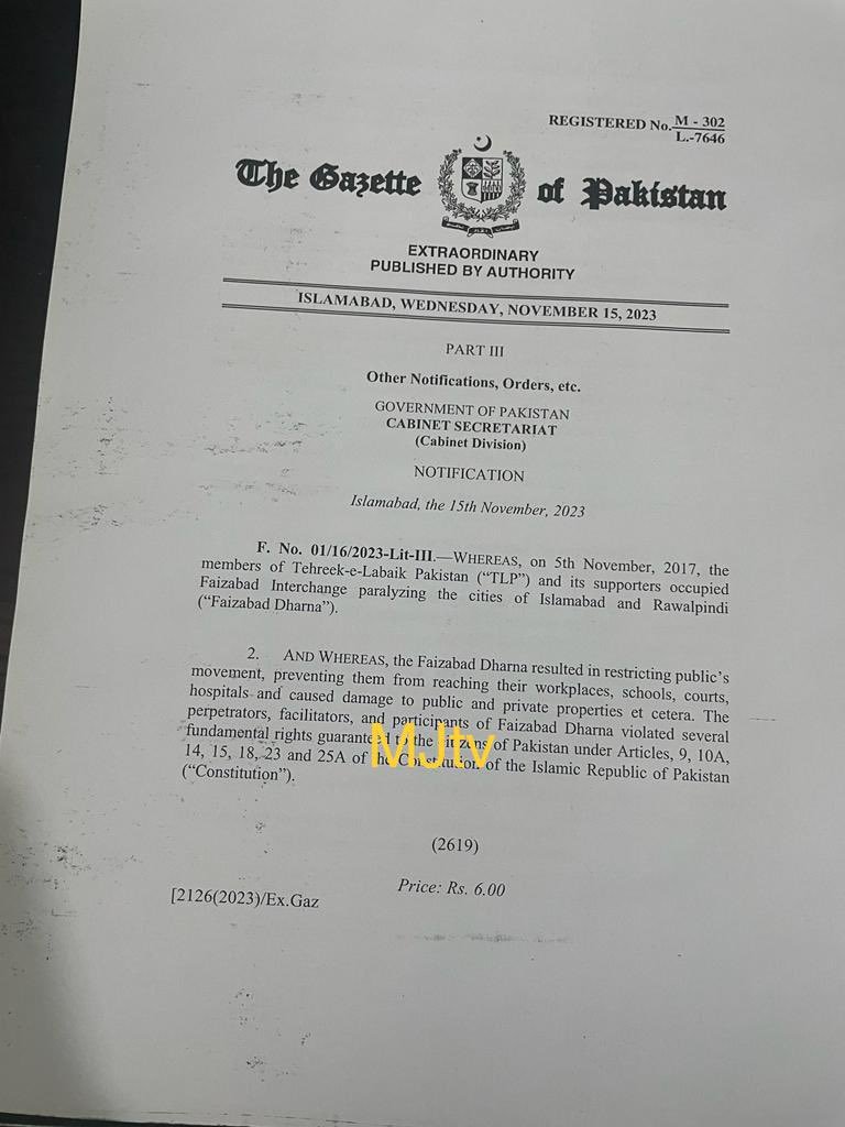 According to the TORs outlined in the notification, the commission is mandated to investigate illegal financial or other support provided to TLP for the Faizabad dharna and subsequent events.