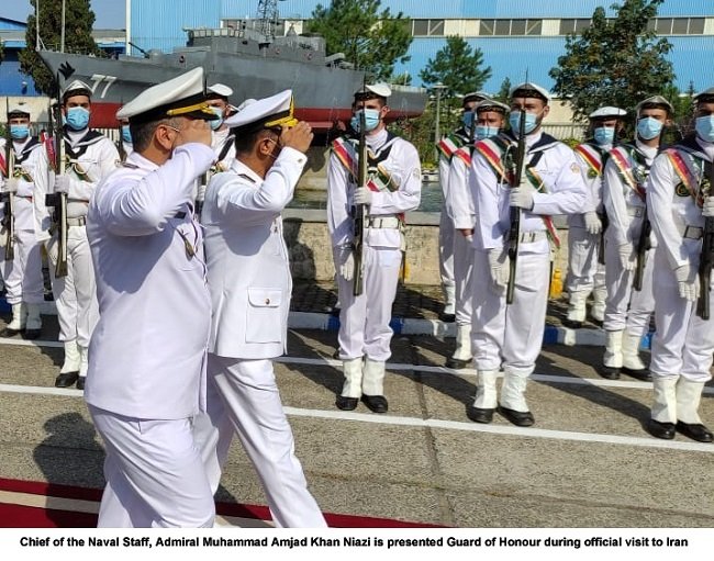 Chief of the Naval Staff Admiral Muhammad Amjad Khan Niazi is on an official visit to Iran. During the visit, the Naval Chief called on Commander Islamic Republic of Iran Navy (IRIN) Rear Admiral Shahram Irani and Commander of Northern Fleet Commodore Abdolvahab Taheri.