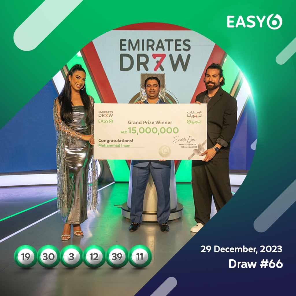 Inam, currently residing in the UAE and working as a finance auditor in Abu Dhabi, achieved millionaire status by winning the Easy6 game at the Emirates Draw.