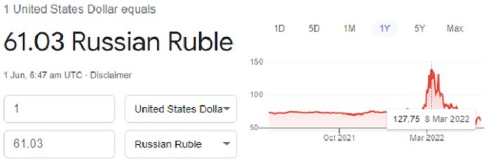 Russia invaded Ukraine on Feb 28 and in the first week of March, the Russian ruble crashed to 128 against the US dollar in the backdrop of economic sanctions imposed by the United States and some European countries.