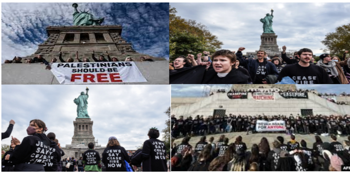 Hundreds of US Jewish activists staged a peaceful occupation of New York’s Statue of Liberty, urging an end to Israel’s “genocidal bombardment” of Gaza’s civilians and a ceasefire.
