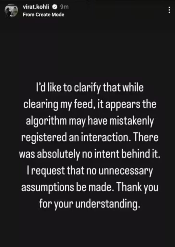 At that time, Kohli issued a clarification. He stated that the activity was not intentional. He explained that it may have been caused by an algorithm glitch. His response received mixed reactions from fans.