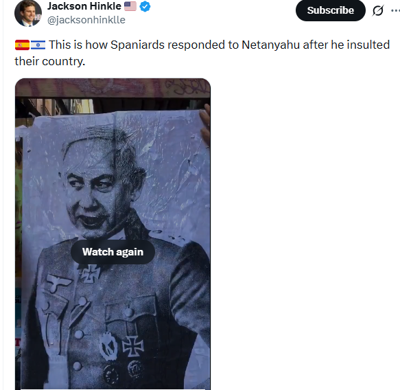 Netanyahu has insulted the Prime Minister of Spain and the people for their support to Iran. Consequently, scores of the Spaniards are degrading Netanyahu on the streets to condemn Israeli war policies and genocide.